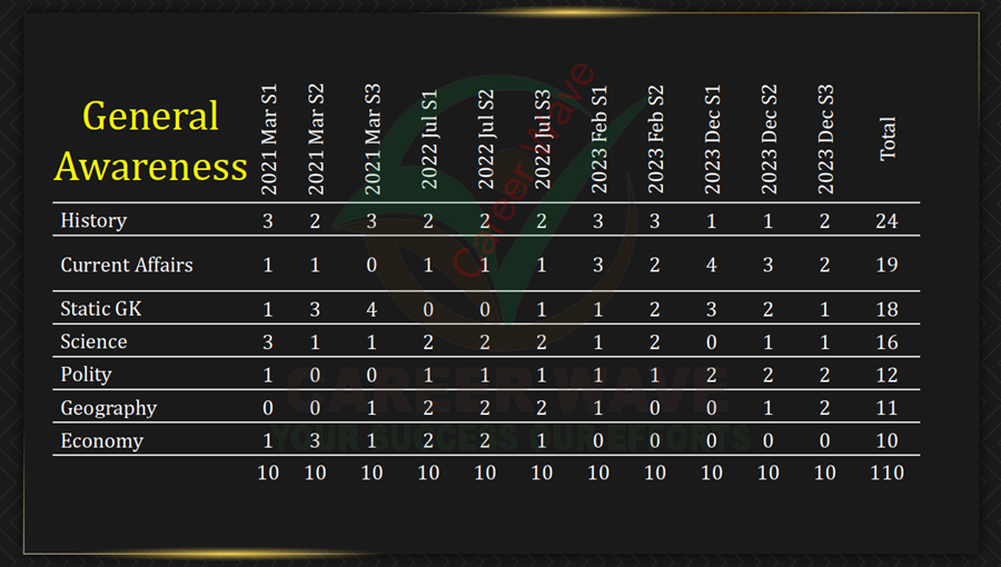 From year-wise PYQ analysis (2021–2023 memory-based papers), Physics dominates selection.